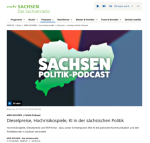 Der MDR-Sachsen Politik-Podcast hat sich vergangene Woche (10.4.2026) mit dem Einsatz Künstlicher Intelligenz in der sächsischen Landes- und Kommunalpolitik beschäftigt. Ergebnis der Recherche: In der Breite ist das Thema dort bislang nur punktuell angekommen.